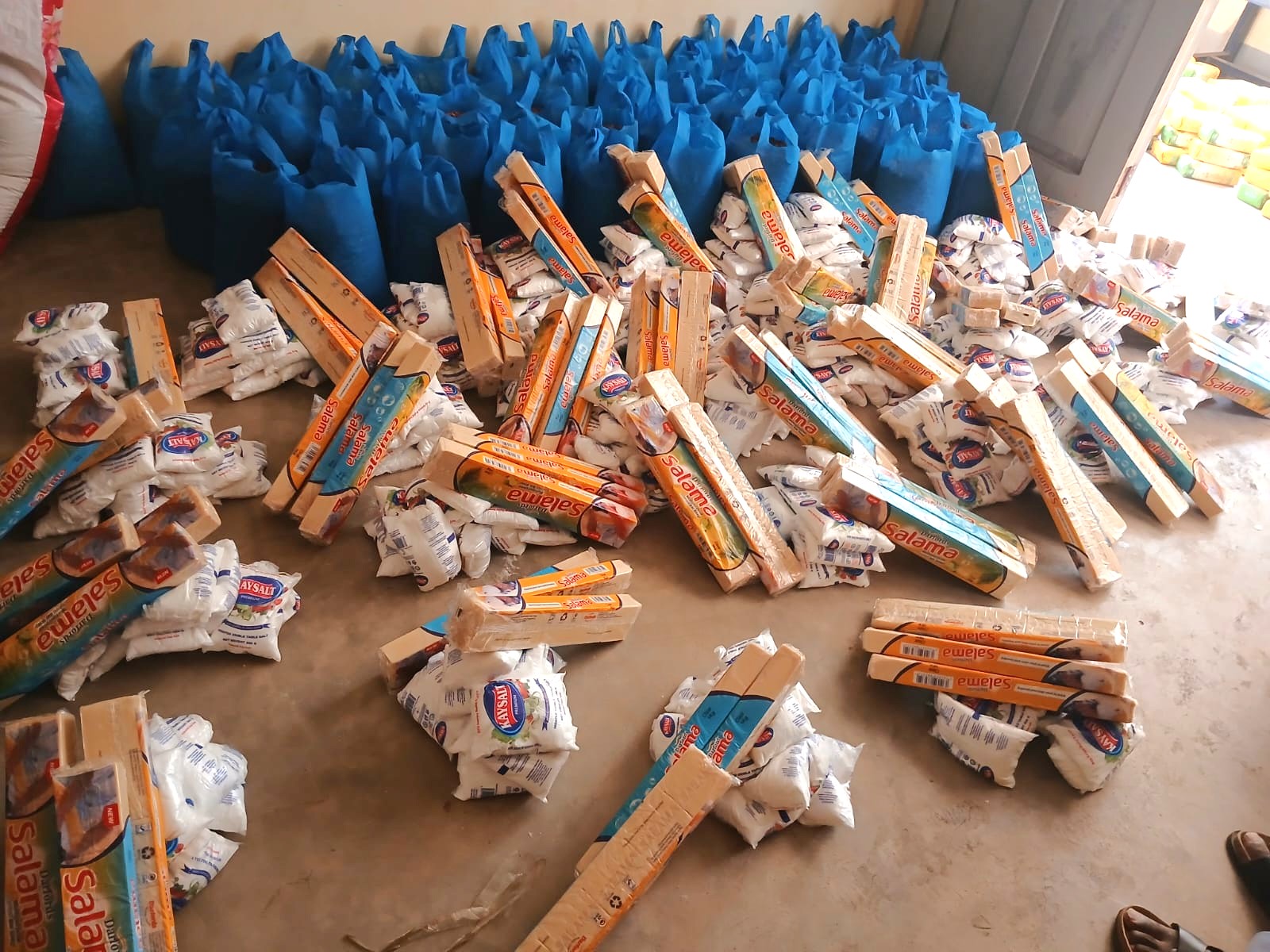 Gestern war es nun so weit, dass die von Fr. Lawrence gekauften Lebensmittel an die Lehrer und Katecheten verteilt werden konnten. Eine logistische Herausforderung war es, die Mengen an Maismehl, Reis, Öl, Zucker zu portionieren und transportsicher zu verpacken. Schöne Fotos und ein wunderbares Video der dankbaren Lehrerschar erreichten uns! Von Lucy hörte ich, dass alle Lehrer sicher mit ihren Schätzen bei ihren Familien angekommen sind. Gott sei Dank!